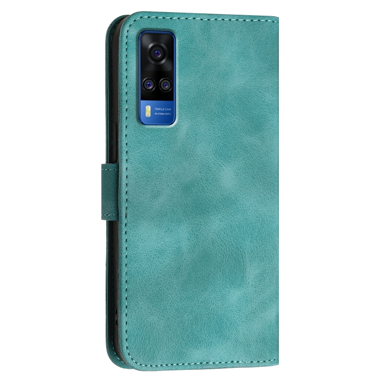 Funda de Cuero con Tapa y Cordón para Vivo Y53S 4G / Y51A / Y33 4G Yx0080 con Diseño En Relieve de Mariposa y Cuadrícula (Azul Claro)