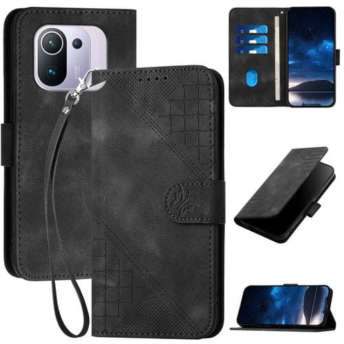 Funda de Cuero con Tapa y Cordón para Xiaomi Mi 11 Pro Yx0080 con Diseño En Relieve de Mariposa y Cuadrícula (Negro)