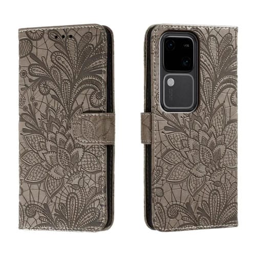 Funda de Cuero con Tapa y Diseño de Flores En Relieve para Vivo S18 (Gris)