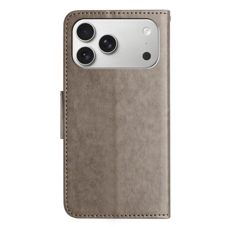 Funda de cuero con tapa y diseño de mariposas y flores para iPhone 17 Pro (gris)