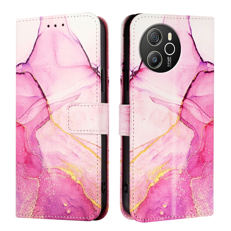 Funda de Cuero con Tapa y Diseño de Mármol para BlackView Shark 8 Pt003 (Rosa, Morado y Dorado)