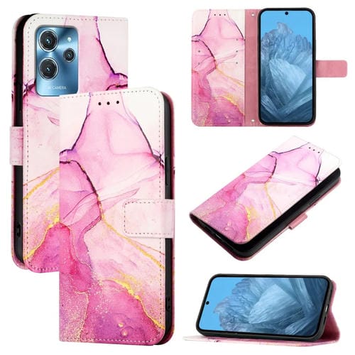 Funda de Cuero con Tapa y Diseño Mármol para Oukitel C32 Pt003 (Rosa, Morado y Dorado)