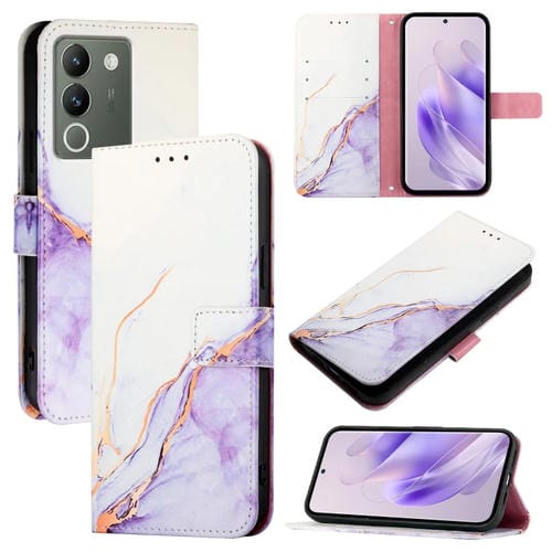 Funda de Cuero con Tapa y Diseño de Mármol para Teléfono Vivo V30 Lite 5G Global Pt003 (Blanco y Morado)