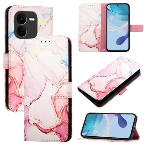 Funda de Cuero con Tapa y Diseño de Mármol para Vivo Iqoo Z9X Pt003 (Oro Rosa)
