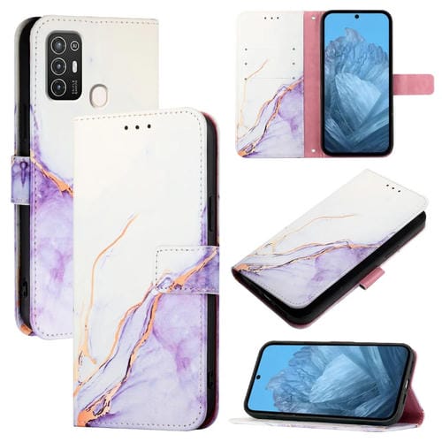 Funda de Cuero con Tapa para ZTE Blade A52 Pt003 con Diseño de Mármol (Blanco y Morado)