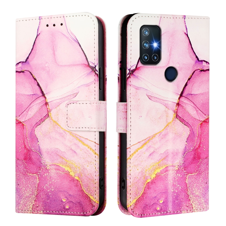 Funda de Cuero con Tapa y Diseño de Mármol Pt003 para OnePlus Nord N10 5G (Rosa, Morado y Dorado)