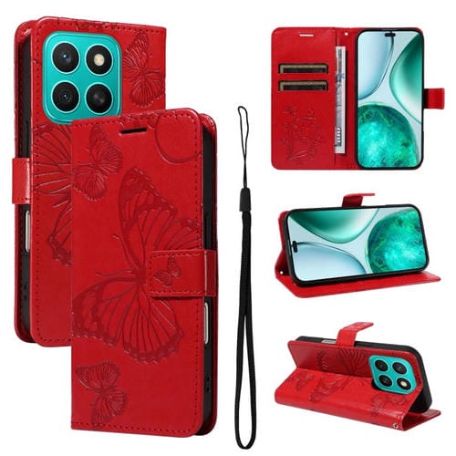 Funda de Cuero con Tapa y Estampado Mariposas 3D para Honor X8C 4G (Roja)