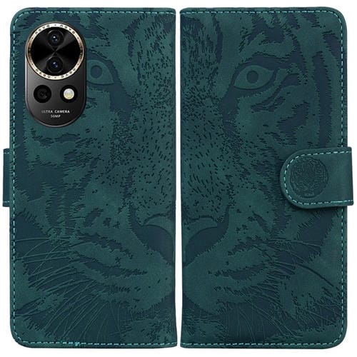Funda de Cuero con Tapa y Estampado de Tigre para Huawei Nova 12 (Verde)