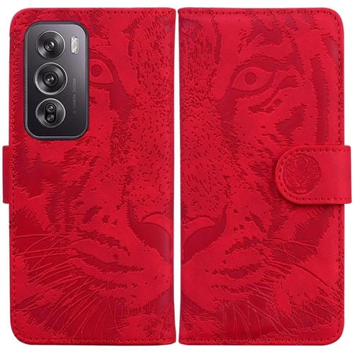 Funda de Cuero con Tapa y Estampado de Tigre para Oppo Reno12 Pro 5G (Rojo)
