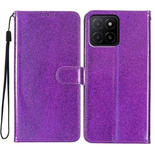 Funda de Cuero con Tapa y Purpurina para Honor X5B 4G (Morada)