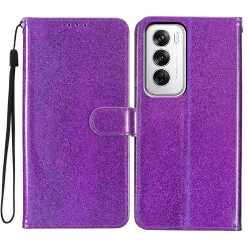 Funda de Cuero con Tapa y Purpurina para Oppo Reno12 Global (Morado)