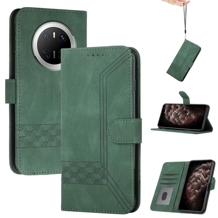 Funda de Cuero con Tapa y Tacto de Piel Cúbica para Huawei Mate 70 (Verde)