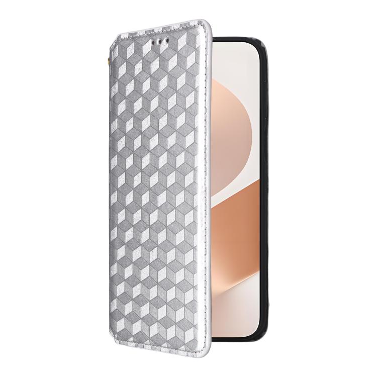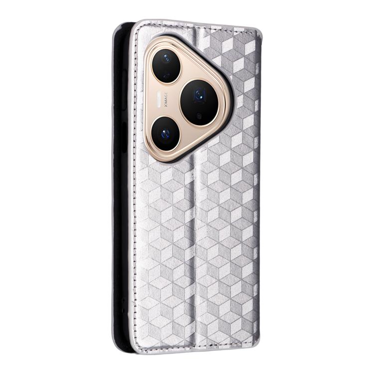 Funda de cuero con tapa y textura de cuadrícula cúbica para Huawei Pura 80 Pro 5G / 80 Pro+ 5G (plateada)