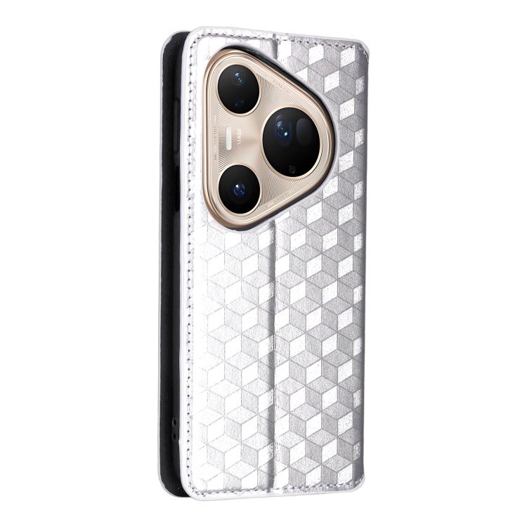 Funda de cuero con tapa y textura de cuadrícula cúbica para Huawei Pura 80 Ultra 5G (plateada)