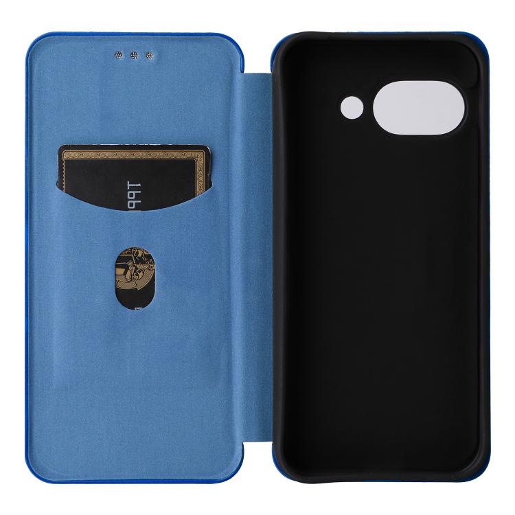 Funda de Cuero con Tapa y Textura de Fibra de Carbono para Google Pixel 9A (Azul)