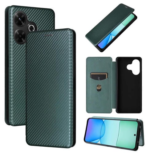 Funda de Cuero con Tapa y Textura de Fibra de Carbono para Redmi 13 4G (Verde)