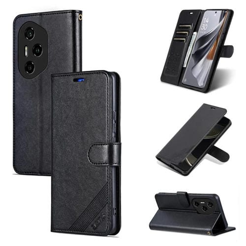 Funda de Cuero Azns con Tapa y Textura de Piel de Oveja para Honor 300 Pro (Negra)
