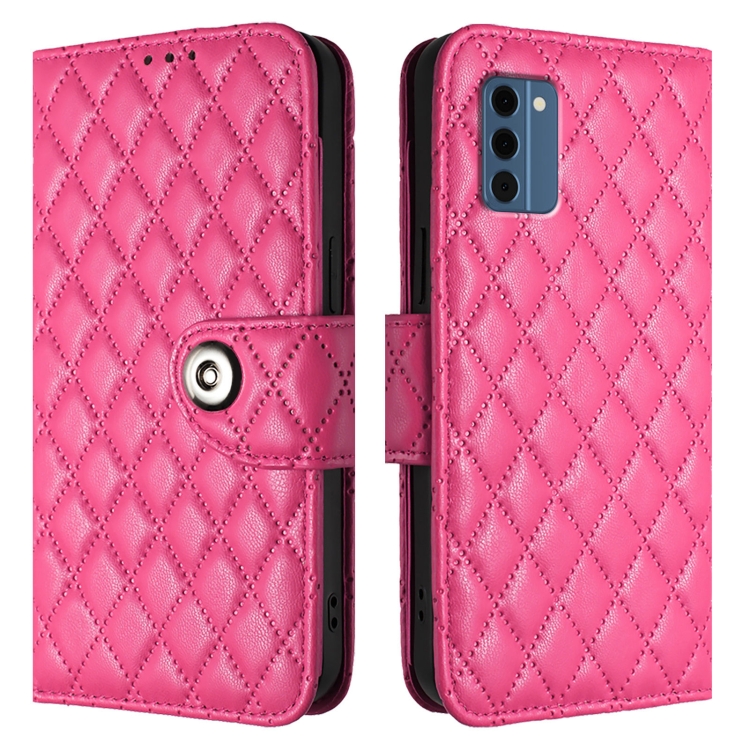 Funda de Cuero con Tapa y Textura Rombal para Nokia C300 con Cordón (Rosa y Rojo)