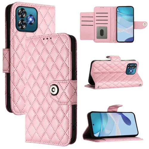 Funda de Cuero con Tapa y Textura Rombal para Teléfono Oukitel C53 con Cordón (Rosa)