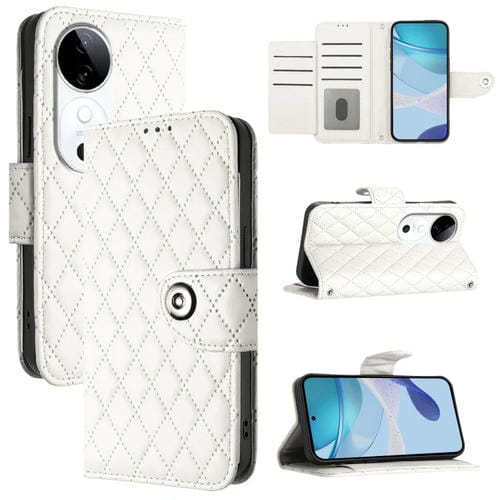 Funda de Cuero con Tapa y Textura Rombal para Vivo S19 con Cordón (Blanco)