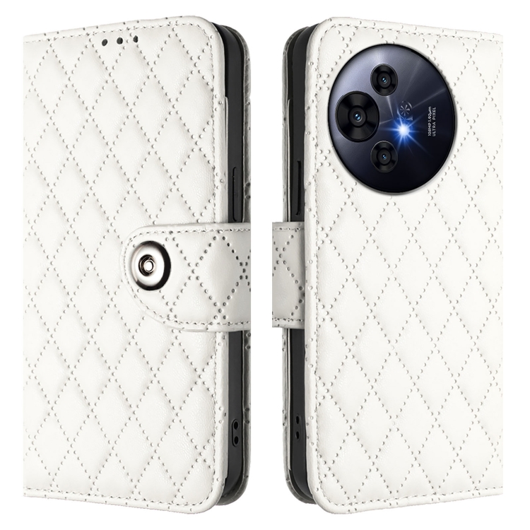 Funda de Cuero Nxtpaper para TCL 50 Pro con Tapa Textura Rómbica y Cordón (Blanco)
