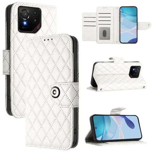 Funda de Cuero con Textura Rómbica y Cordón para Asus Rog Phone 9/9 Pro (Blanca)