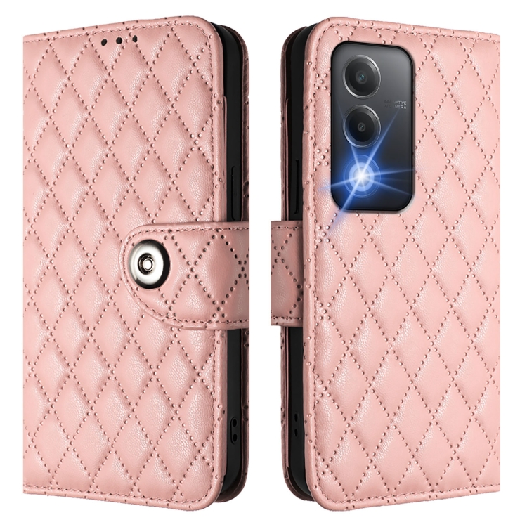 Funda de Cuero con Tapa y Textura Rómbica para Teléfono Oppo A80 5G Eu con Cordón (Rosa Coral)