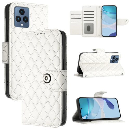 Funda de Cuero con Tapa y Textura Rómbica para T-Mobile Revvl 6/6X 5G con Cordón (Blanco)