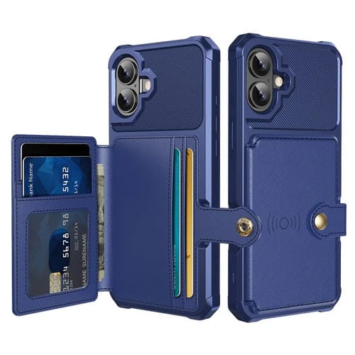 Funda de Cuero con Tarjetero y Billetera Magnética para iPhone 16 Plus (Azul)