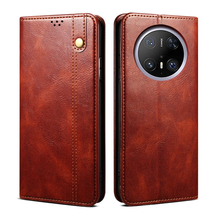 Funda de Cuero Crazy Horse con Cera de Aceite para Huawei Mate 70 5G (Marrón)