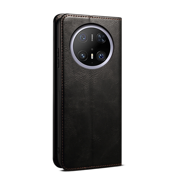 Funda de Cuero Crazy Horse con Cera de Aceite para Huawei Mate 70 5G (Negra)