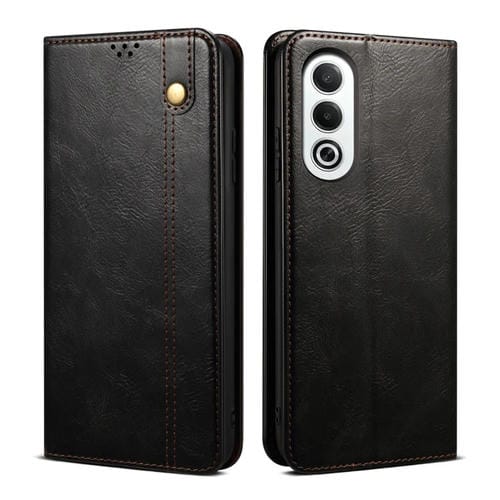 Funda de Cuero con Textura Crazy Horse y Cera de Aceite para Oppo K12X 5G (Negra)