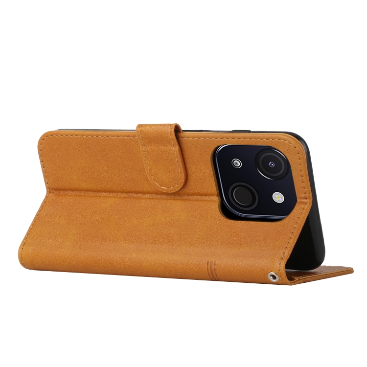 Funda de Cuero con Textura de Becerro y Hebilla para Teléfono Itel A50C (Amarillo)