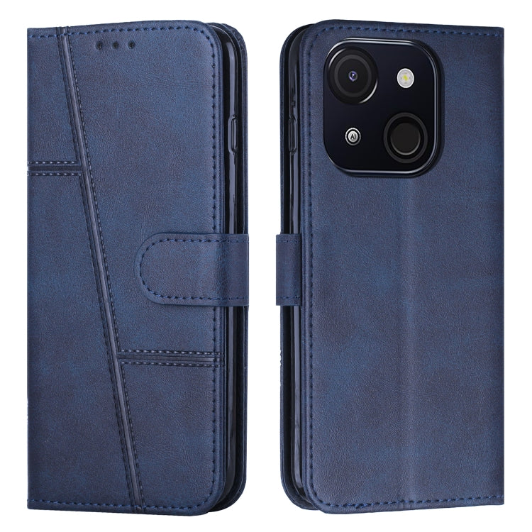 Funda de Cuero Textura Becerro con Costuras para Teléfono Itel A50C (Azul)