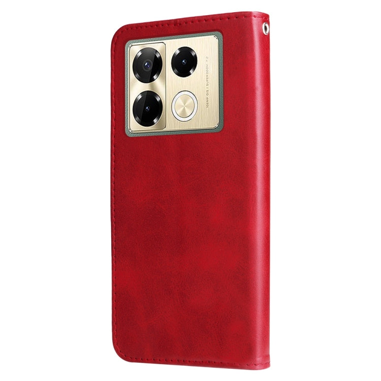 Funda de Cuero Textura Becerro con Cremallera para Infinix Note 40 Pro 4G/5G y Pro+ (Rojo)