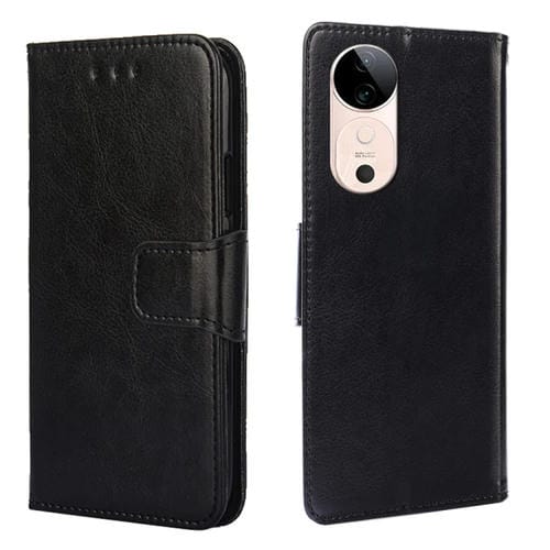 Funda de Cuero con Textura de Cristal para Teléfono Vivo S19 (Negro)