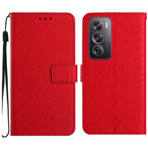 Funda de Cuero con Textura de Cuadrícula Rómbica Global para Oppo Reno12 Pro 5G (Roja)