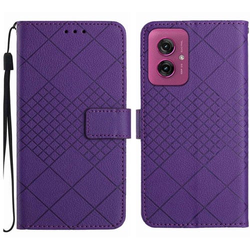 Funda de Cuero Motorola Moto G55 5G con Textura de Cuadrícula Rómbica (Morado)