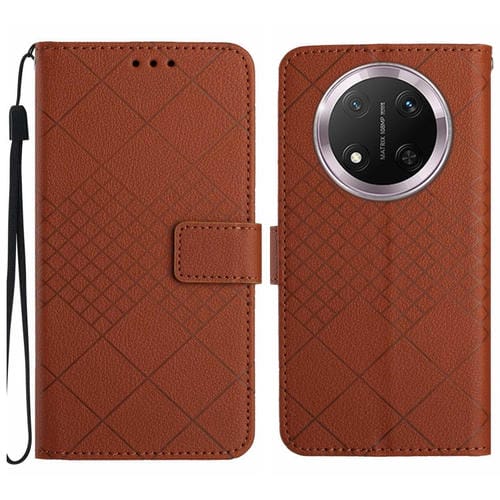 Funda de Cuero con Textura de Cuadrícula Rómbica para Honor X9C (Marrón)
