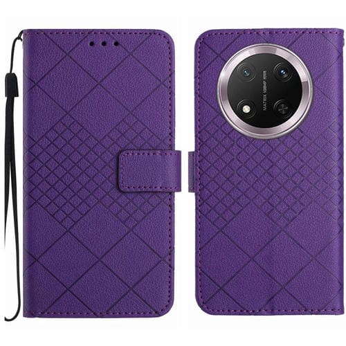 Funda de Cuero con Textura de Cuadrícula Rómbica para Honor X9C (Morado)