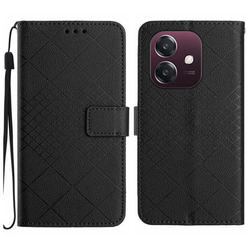 Funda de Cuero con Textura de Cuadrícula Rómbica para Teléfono Oppo A3 4G Global / 5G Global (Negra)