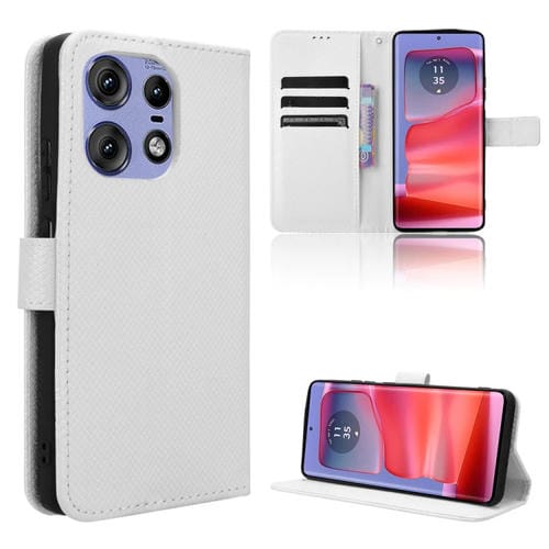 Funda de Cuero con Textura de Diamante para Motorola Edge 50 Pro (Blanca)