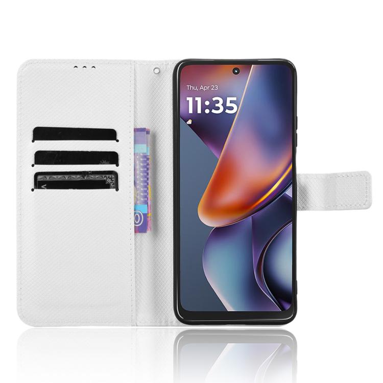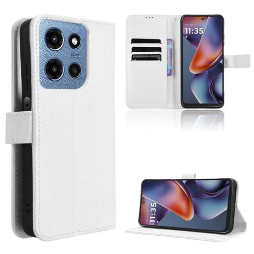 Funda de Cuero con Textura de Diamante para Motorola Moto G 5G (2025) (Blanca)