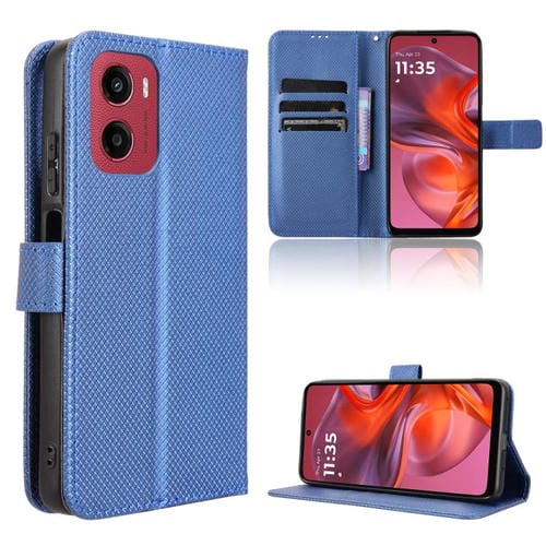 Funda de Cuero con Textura de Diamante para Motorola Moto G05 4G / E15 4G (Azul)