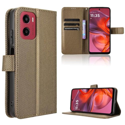 Funda de Cuero con Textura de Diamante para Motorola Moto G05 4G y E15 4G (Marrón)