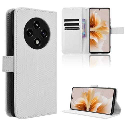 Funda de Cuero con Textura de Diamante para Oppo F27 Pro 5G / F27 Pro+ 5G (Blanca)