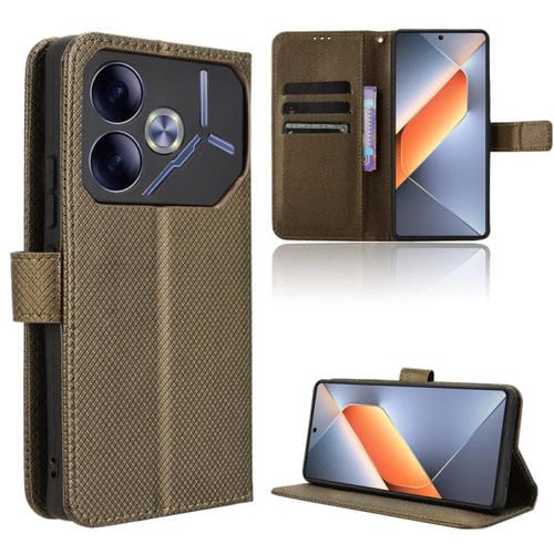 Funda de Cuero para Tecno Pova 6 4G con Textura de Diamante (Marrón)