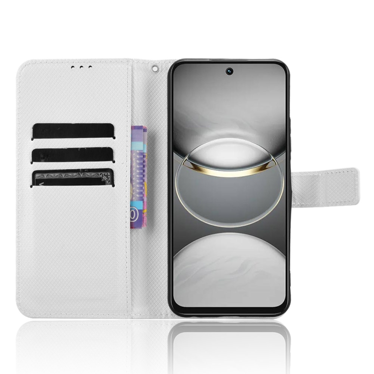 Funda de Cuero con Textura de Diamante para Tecno Spark 30C 4G (Blanca)