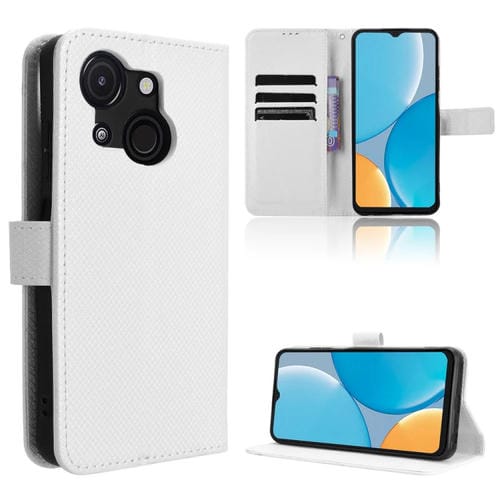 Funda de Cuero Itel A50C con Textura de Diamante para Teléfono (Blanca)