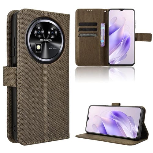 Funda de Cuero con Textura de Diamante para Teléfono Oukitel C37 (Marrón)